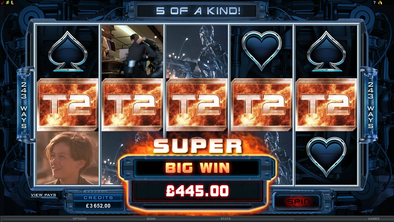 Со среды 1 июля по понедельник 3 августа 2015, первые 100 игроков получат денежные призы, а победитель получит невероятные €10 000! Все что игрокам нужно, войти и играть в 100K Слот Турнир Terminator II.