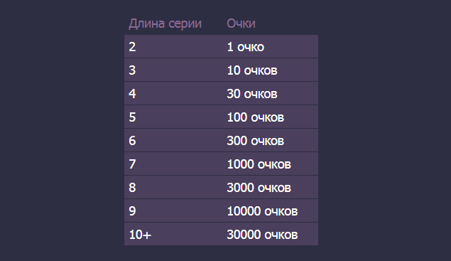 - Турнирные очки набираются путем набора от 2 выигрышных серии. Выигрышной считается серия, где сумма выигрыша в игровом раунде превышает общую сумму ставки игрока. Например, игрок играет по 9 линиям с монетой 1 рубль, общая ставка игрового раунда составляет 9 рублей. В случае, если игрок получает подряд от 2 выигрышных серий с выигрышем от 9,1 рублей и выше в каждом игровом раунде в турнирную таблицу записывается 1 бал и выше, согласно таблице ниже.
