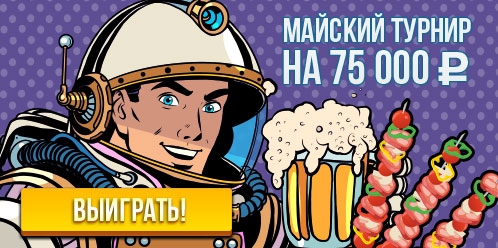 Майский турнир с призовым фондом 75 000 рублей пройдет с 1 по 10 число. Сделай лучшее отношение выигрыша к ставке и забери главный приз турнира.