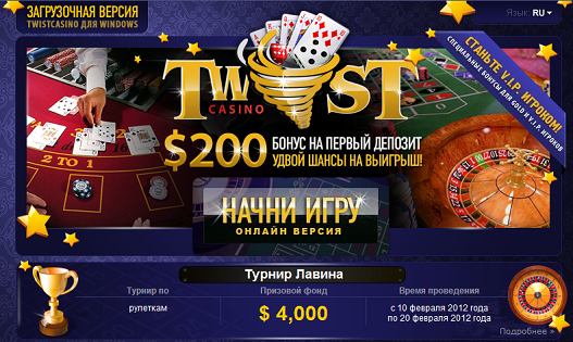 Двадцатого и двадцать первого августа в "Твисте" – известном online казино среди пользователей будет проводиться турнир «Азартный аттракцион» включающий в себя соревнования по популярным играм - Racetrack Roulette, European Roulette, No-Zero Roulette, American Roulette. Количество денег в призовом фонде составляет три сотни долларов. Победитель получит восемьдесят долларов. Каждый приз будет выплачен в качестве бонусных денег на индивидуальный игровой счет каждого участника состязания. Бонусный вейджер равен десяти.