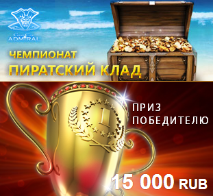 Азартное начало уикенда в «Адмирале»! 23 августа стартует чемпионат «Пиратский клад» с призом 15 000 рублей для одного, наиболее успешного и быстрого, игрока. Играйте на любых слотах и двигайтесь к финишу, проходя этап за этапом на пути к победе.