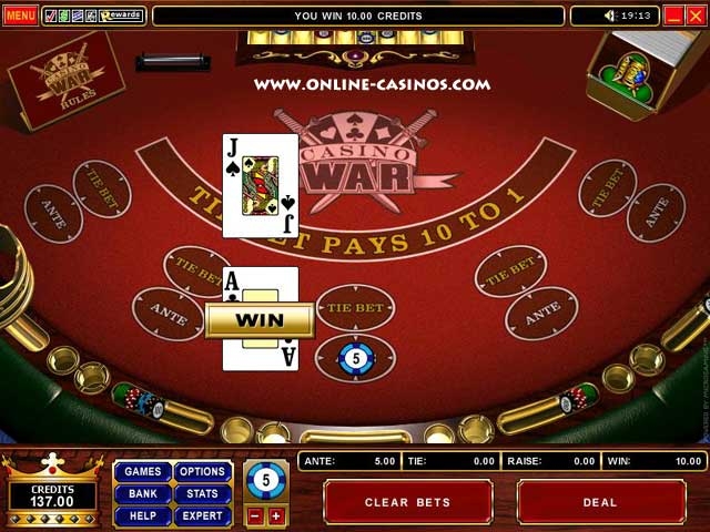 В ходе выпадения участнику "Войны казино" и дилеру одинаковых карт, игрок имеет право или отказаться от продолжения игры за 0,5 ставки и нажать "сдаваться", или удвоить ставку, чтобы сыграть с дилером ещё одну партию. Для этого необходимо выбрать кнопку "War". В случае выбора игроком «Войны», он умножает первоначальную ставку вдвое. После этого дилер сдаёт раскрытыми ещё по 1 карте и себе, и участнику игры.