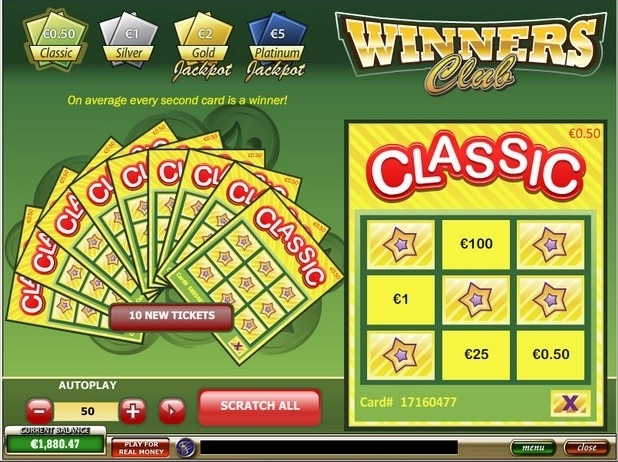 Если рассматривается тема выигрышей, то следует поведать и о возможности получить прогрессивный джек-пот. Как бы ни было прискорбно, но нужно отметить, что не все скретч игры оснащены рассматриваемым типом выигрыша, чтобы исключить вероятность его частых срывов. Из-за этого и получилось выпустить игру «Winners Club».