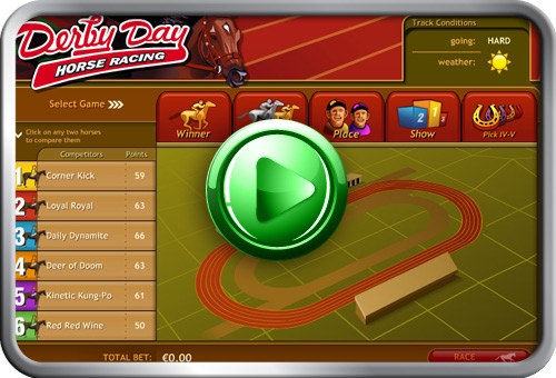 Спешим обрадовать всех любителей скачек и просто желающих сорвать немалый куш, не покидая домашнего уюта, на просторах какого-то казино вам выпадает уникальный шанс стать участником настоящих лошадиных скачек в супер игре "День дерби"! Эта игра навсегда изменит Ваше представление о посещении ипподрома! Присоединяйтесь прямо сейчас и станьте обладателем уникальной возможности влиться в атмосферу азарта и соперничества, присущую настоящим конным скачкам и при этом выиграть большие деньги!