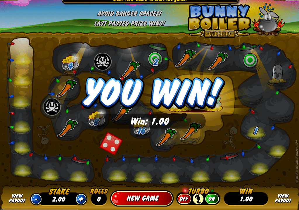 Уважаемые любители азартных развлечений, представляем вашему вниманию весьма захватывающую и забавную онлайн игру "Bunny Boiler Gold". В ходе этой игры, у вас появляется возможность весело провести время, а также попытать удачу и стать обладателей внушительного выигрыша. Всю игру вас будет веселить забавный и очень симпатичный главный герой этой игры, кроме того, качественное звуковое сопровождение обеспечит вам хорошее настроение на протяжении всего игрового процесса.