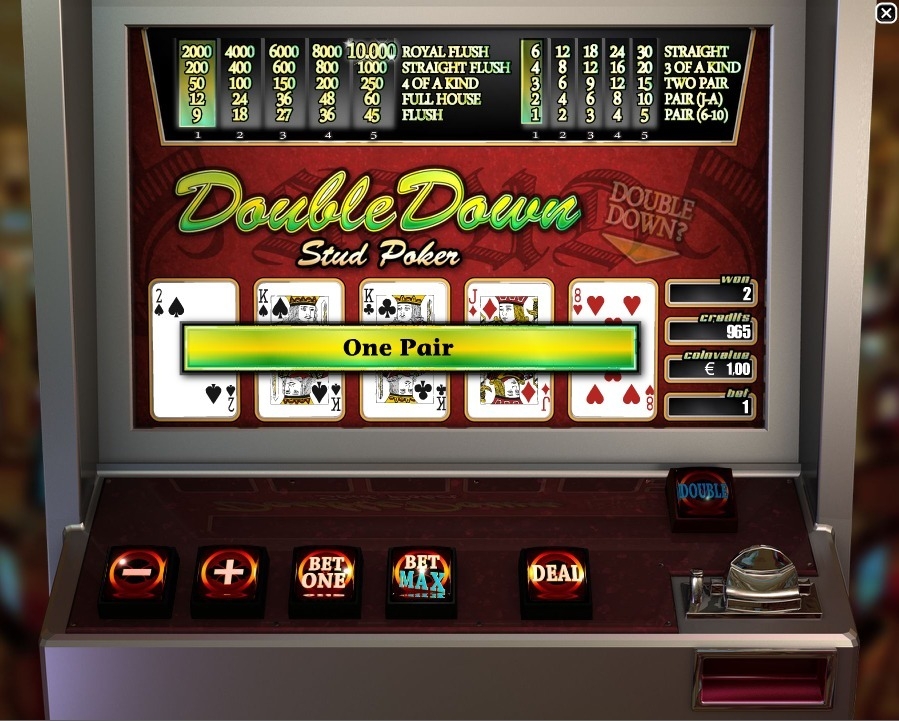В версии «Double Down Stud Poker» ключевым моментом для игрока является его удовлетворенность от полученной руки после раздачи первых четырех карт. С появлением четырех «открытых» карт начинается пятикарточный Стад. После этого пользователь сам должен решить нужно ли ему удваивать ставку или нет. Затем появляется последняя, пятая, карта.
