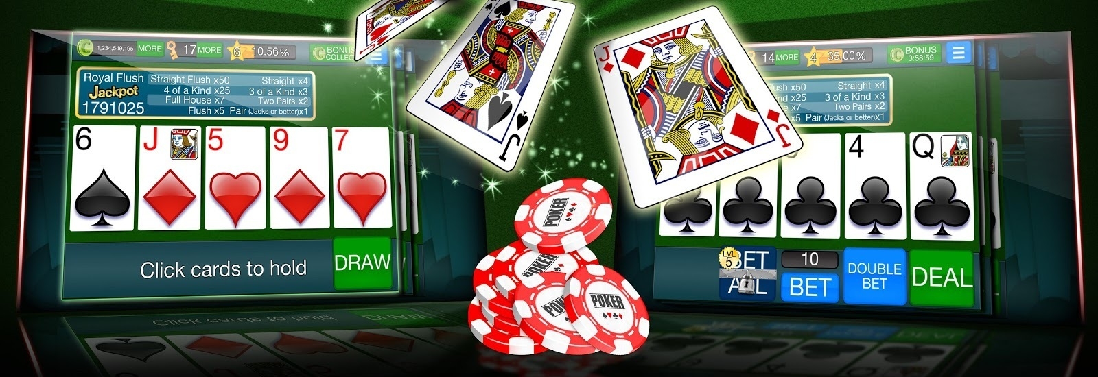 На сегодняшний день существует множество разновидностей видео-покера, которые можно найти в любых казино, и, разумеется, в онлайновых в том числе. Исходя из того, что нужно иметь хотя бы общее представление об игре, прежде чем зарядить в нее свои деньги, на очереди после краткого курса по видео-покеру, описание особенностей одного из самых популярных видов видео-покера - Double Double Bonus Poker.