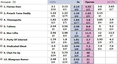 В разных букмекерских конторах ставить можно разные минимальные ставки – единого общепринятого минимума нет. Что касается наземных контор, сумма может составлять порядке двух баксов. Шансы на победу представлены как сумма x к одному или x к двум в редких случаях. До старта события, коэффициенты колеблются. Изменения происходят в связи активностью игроков, которые делают ставки на заезд.