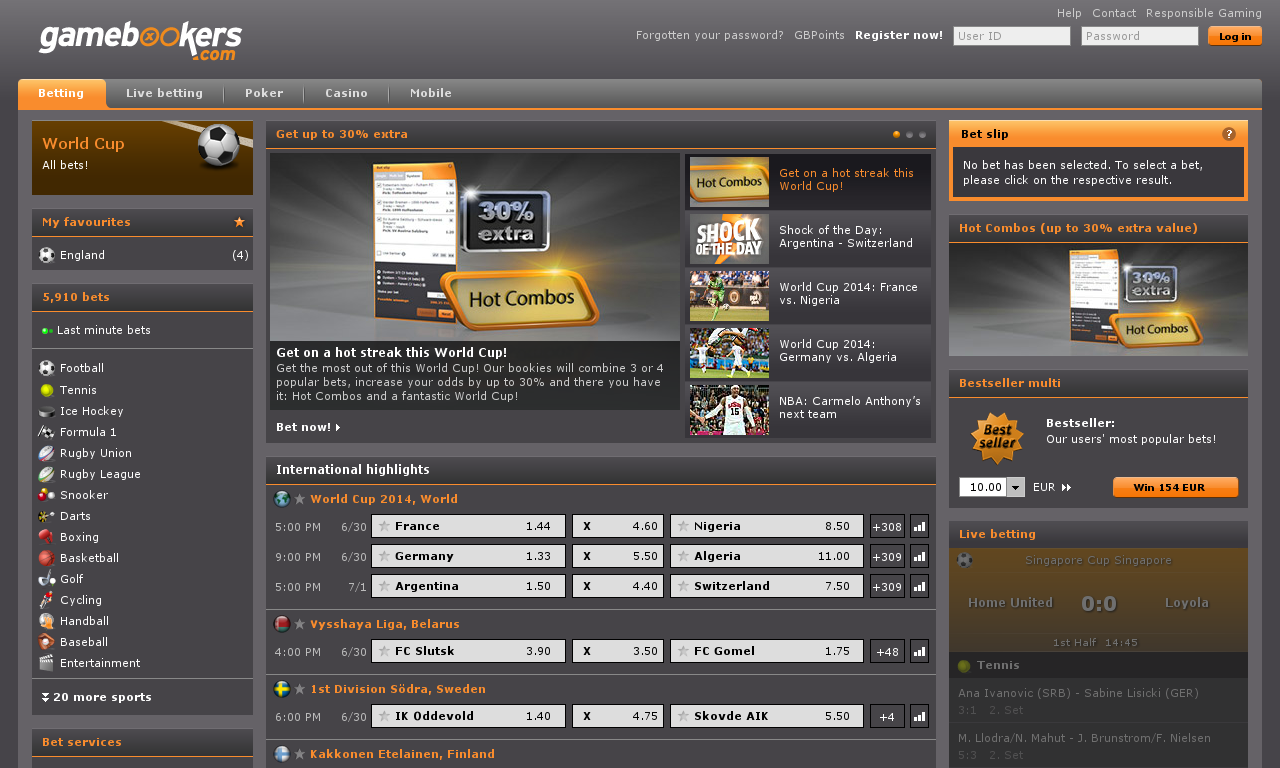 Компания славится своим разнообразием ставок (30 000 ежедневно) на 90 видов спорта. Во время чемпионатов мира и различных турниров роспись велика и многогранна. Через режим online доступны все разделы ставок и каждый игрок находит предпочтительную. Помимо этого доступна статистика игр, как по очным встречам, так и по карточкам. БК “Bwin” подойдет и тем, кто предпочитает делать ставки по ходу матча, а не заранее.