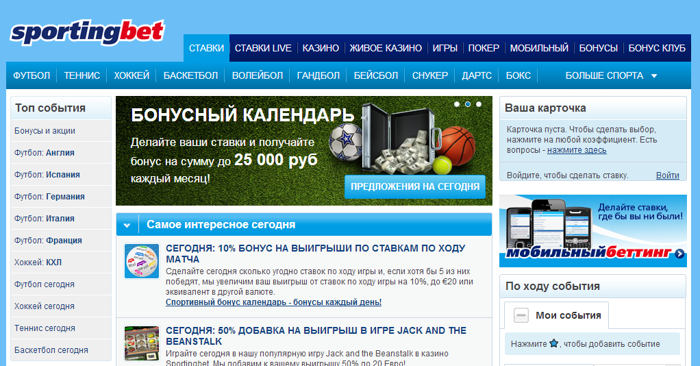 Сервис Sportingbet обладает надежностью и качественным предоставлением услуг для игроков. Выплаты проходят очень быстро. На сегодняшний день число постоянных игроков достигло 4 млн. пользователей со всех уголков мира. Этот интернет ресурс помогает людям, не только погрузится в мир спортивного азарта, но и заработать деньги.