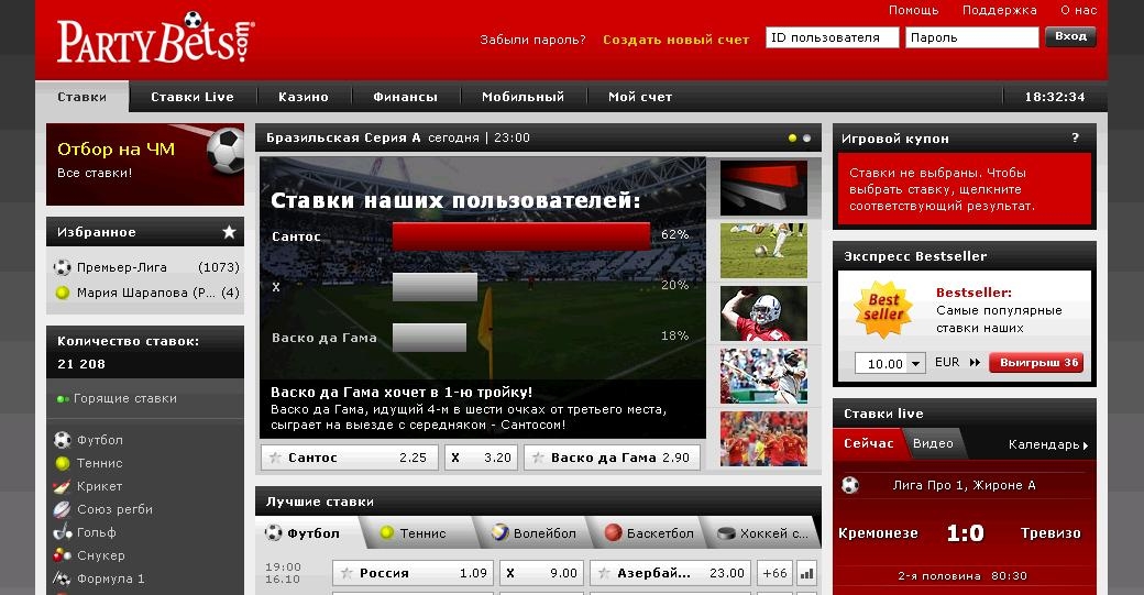 Сайт очень хорош и удобен. Конечно предпочтения у всех разнообразные, мне он очень импонирует. Достоинством можно отметить русскоязычное меню. Несомненно, положительным качеством является принятия разнообразных платежей. Линия достаточно хороша. Здесь размещаются различные виды спорта, ширина ее обрадует любого игрока. Большим преимуществом линии в PartyBets это то, что пользователи имеют реальный шанс поставить на неординарные события в спортивном мире и за его пределами.