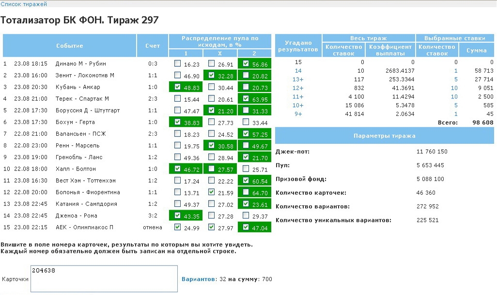 Участники электронных тотализаторов все-время имеют шанс получить Джек-Пот, размер которого может быть миллион, а иногда и несколько миллионов российских рублей. В случае, когда джек-пот не разыграют, его размер переносится на последующий розыгрыш, помимо того, джек-пот увеличивается, значит, в последующем розыгрыше он будет большего размера.