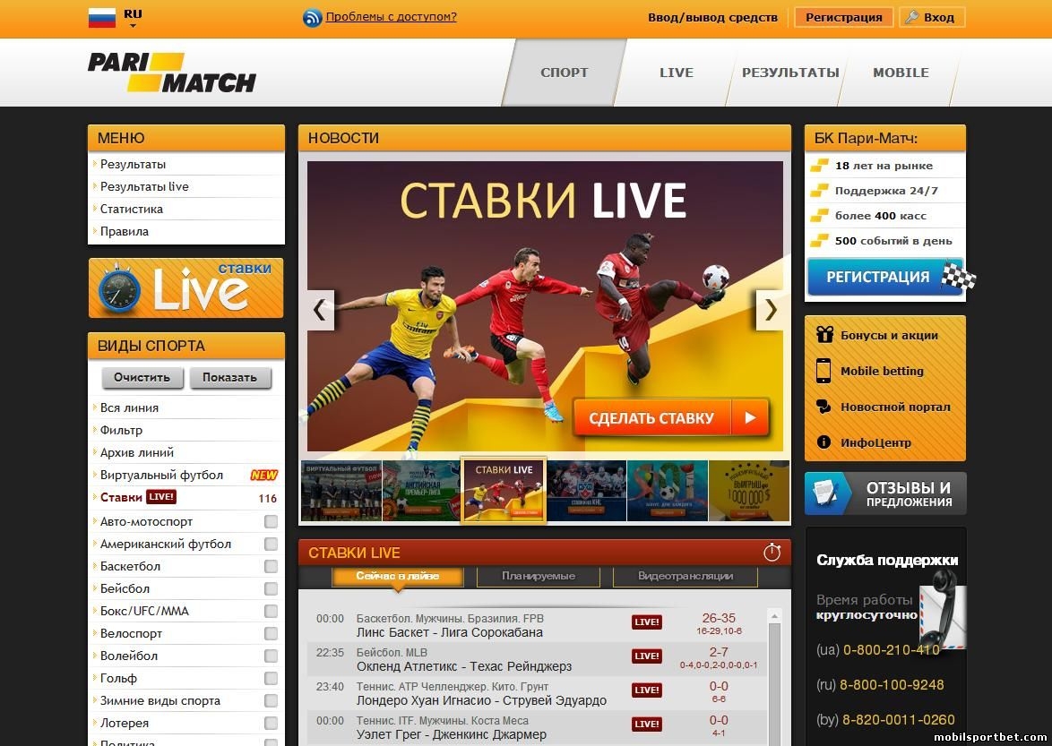 У ПариМатч также имеется хороший и удобный сайт, который отличается отличным оформлением и отличной навигацией. Отыскать нужное событие пользователю не составляет труда. Многие события предоставлены в режиме live.