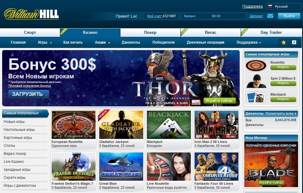 Организация Вильям Хилл владеет сайтом, который переведен на большинство языков мира, впрочем, жители стран СНГ не так давно были неудовлетворенны его наполнением.