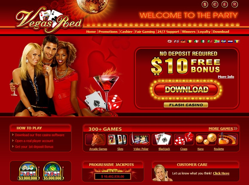 Приглашайте друзей и знакомых играть в виртуальном казино «Vegas Red». За каждого привлеченного клиента казино подарит вам по 50 долларов. Особенно заведение ценит хайроллеров и дарит им 50% бонусы, но для этого необходимо, чтобы сумма пополнения счета была не менее 1600 долларов. Новым клиентам доступен скромный, но зато очень приятный бездепозитный бонус – 10 американских долларов.