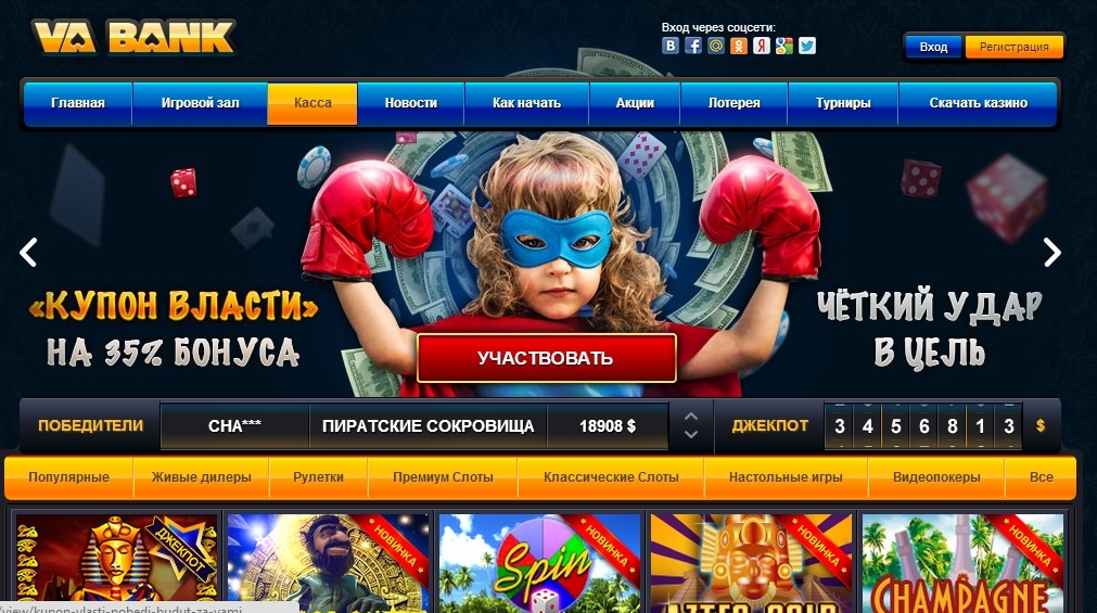 «Ва-Банк» - это, наверное, старейшее онлайн-казино в Рунете. В 2009-м году у заведения изменилось руководство, и началась новая эпоха его существования. «Va-Bank» смело можно наградить титулом казино низких ставок, потому что здесь практически на все игры, представленные в ассортименте можно ставить по одному центу за раунд.
