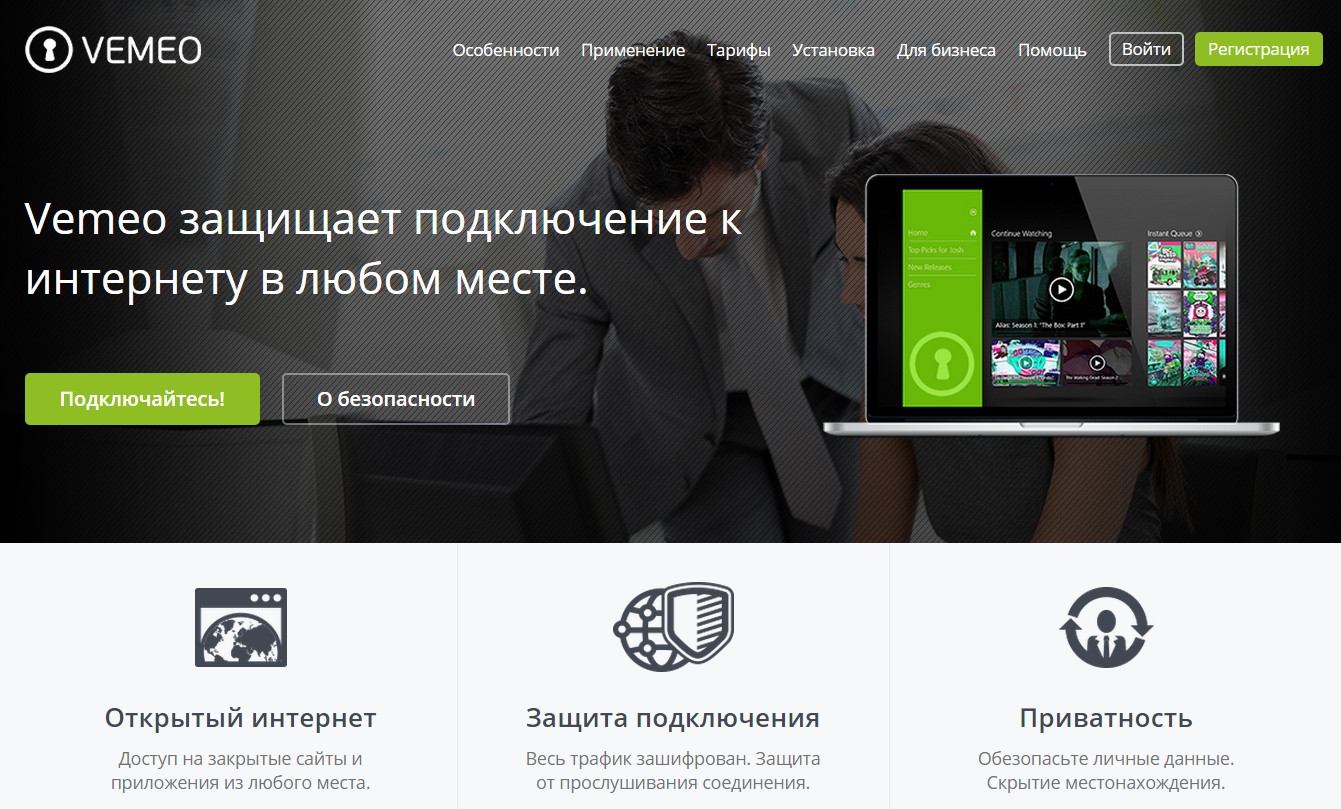 Популярный сервис, который подменяет IP пользователя адресом Vemeo и скрывают местоположение клиента. Соответственно, личные данные надежно защищены, а блокировки без труда обходятся. Главный недостаток – необходимость платить за услуги.