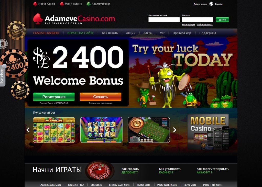 Мобильно казино под названием «Adameve Casino» дарит клиенту все условия для того, чтобы тот комфортно провел отдых и сорвал большой куш. Незабываемым станет ваше время, проведенное в этом заведении, благодаря его качественному игорному софту, великолепной графике, отличному выбору самых популярных игр, щедрым бонусным программам.