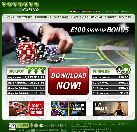 Не так давно виртуальное казино «Unibet» отпраздновало десятилетний юбилей своего существования в мире азартных игр онлайн. Принадлежит заведение шведской компании Unibet Group, которая очень хорошо известна особенно в европейских странах, на ее сайтах играют несколько миллионов людей. Свою лицензию казино «Unibet» получило на Мальте, а его деятельность контролирует Комитет Лотерей и Азартных Игр этой страны. Настоящей гордость заведения считаются живые тотализаторы, лотереи, профессиональные игры, покер, можно также делать и ставки на спорт.