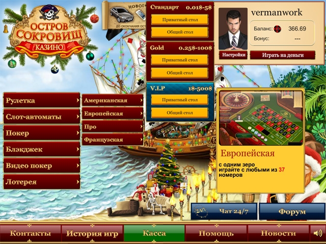 В онлайн казино Остров Сокровищ вам точно попадется нужный стол с наиболее выгодными лимитами, которые начинаются от одного цента и заканчиваются сотней долларов!