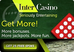 Для получения бонусов в «Intercasino» необходимо ввести в кассе специальный код, данное правило действительно с 2006 года. Кроме этого, онлайн казино предлагает всем свои клиентам ежемесячный бонус в размере до 100 долларов, также существует приветствующий бонус на первый депозит в размере 100% до 225 долларов.