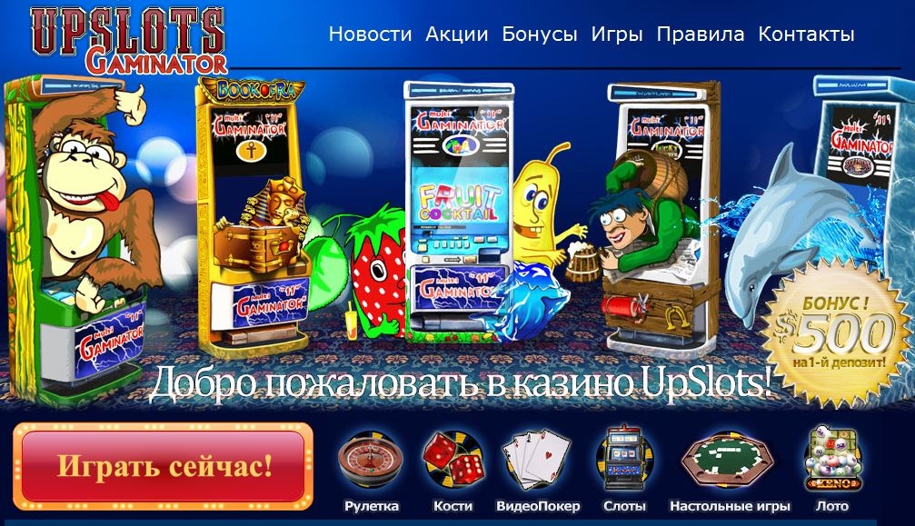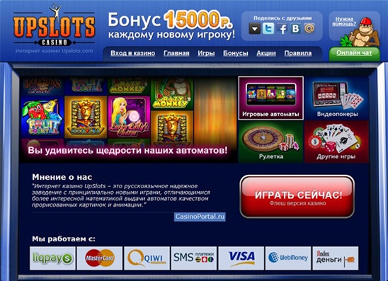 Интернет казино «Upslots» является представителем того, не очень широкого списка, игорных заведений, которые акцентируют свое внимание именно на руских игроков. Здесь присутствуют игровые продукты от таким компаний как Гейминатор и Игрософт.