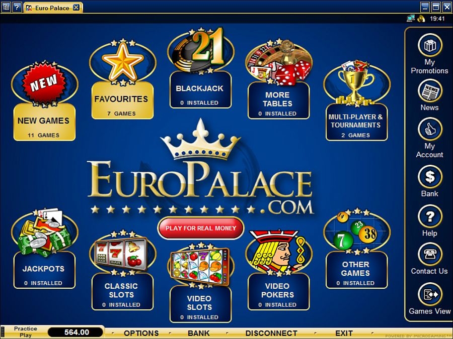 Хотите играть, но никак не можете себе найти действительно надежное казино экстракласса? Тогда вам обязательно нужно заглянуть в «EuroPalace Casino». Здесь вы найдете огромною коллекцию захватывающих, интересных игр и возможно станете их победителем. Ассортимент развлечений в этом заведении насчитывает более 450 наименований. Функционирует «EuroPalace» на платформе LGA, которая считается одной из самых безопасных и удобных. Заведение получило официальную лицензию, а контролирует его Cogra. Спешите получить истинное удовольствие от игры, зарегистрировавшись на сайте «EuroPalace».