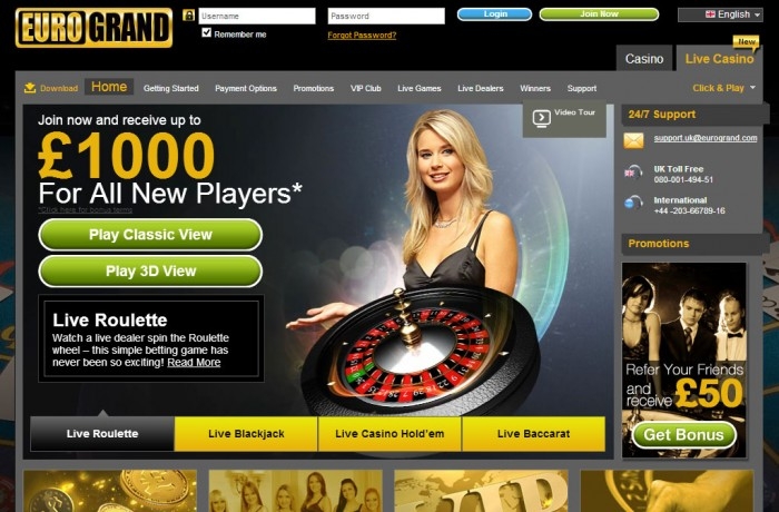 Во что же там можно поиграть? Во все! Есть и карточны, и настольные игры, есть живые дилеры, слот-машины, видео-покер, скрэтч-карты и всевозможные развлекательные игры. Любую игру можно сначалпа опробовать в тестовом бесплатном режиме, не прохождя регистрацию на сайте. Кстати, казино Еврогранд очень удобное для пользоваелей: регистрация короткая, есть русскойязычная версия, игры доступны непосредственно с браузера, но при желании можно скачать клиентскую программу казино.