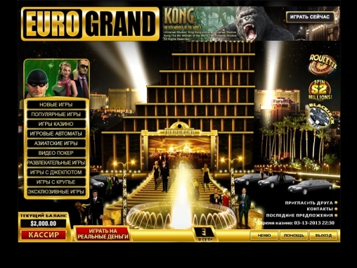 Безусловно, Еврогранд – лучшее казино впринципе, но в моем рейтинге в этом месяце оно не первое, а лишь третье. Не хватило мне новинок. Почему-то скудный выбор новых игр в этом месяце, зато старые, многие из которых мной уже испробованны, на высоте. Среди игр казино Еврогранд игровые автоматы, настольные игры, карточные игры, аркады и скрэтч-карты, лотереи, игры с живыми дилерами. Если вы еще не занкомы с разнообразием игр в казино Еврогранд, то обязаельно протестируйте для себя в демо-режиме некоторые из них. Демо-версии игр доступны бесплатно. Игры с живыми дилерами доступны только для просмотра, если вы не хотите регистрироваться и делать ставки.