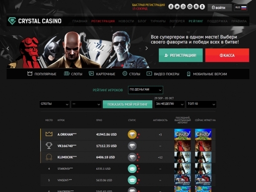 Казино Кристалл – восьмое место рейтинга