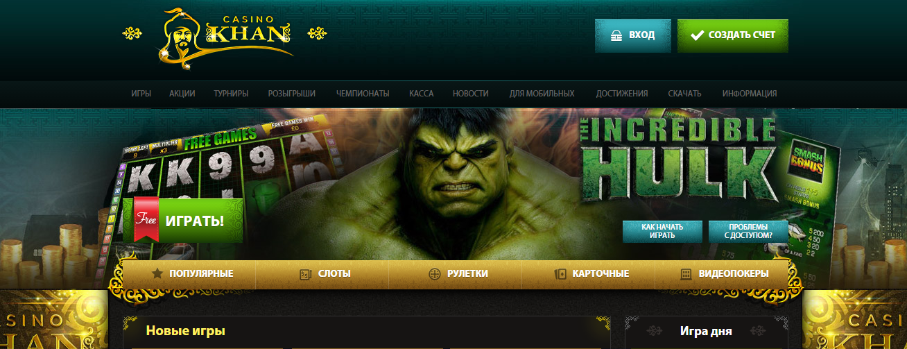 Это казино я впервые посетила именно в начале лета 2015. Признаюсь, оригинальный дизайн и многообещающая реклама игр заставили меня зайти на сайт ранее не изведанного игорного заведения. Хан понравися на столько, что заслуженно попал на второе место июньского рейтинга.
