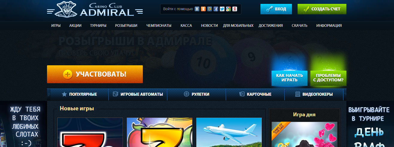 И напоследок, несколько слов о турнирах и чемпионатах. Они проводятся в Адмирал клуб регулярно, и призы часто бывают очень щедрыми. Так что участвуйте – не пожалеете.