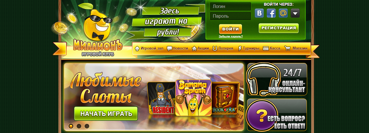 Казино Миллион-слотс импонирует мне своей доступностью. Туда можно зайти с одним рублем и хотябы разок сыграть в рулетку, покер, блэкджек, баккара, видео покер, аркаду или другую азартную игры. Но основной акцент в данном игорном заведении сделан на игровых автоматах. Их выбор наиболее обширный, есть совсем примитивные трехбарабанные слоты, но большинство гейминаторов приятно впечатляют функциями и разнообразием тематик. Вот только прогрессивные джек-поты в Миллион-слотс не разыгрываются.