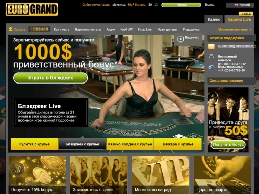 Пожулай, это первое казино, в котором я играла вообще. Когда увидела оформение Еврогранда, то поняла, что виртуальные игорные дома могут быть на уровне с настоящими. Эти роскошные ступеньки – вход в Еврогранд – кажется, будто ты направляешься в настоящее игорное заведение. Все разделы виртуального заведения для азартных развлечений структурированы. Можно легко отыскать раздел с играми, информацию о бонусах, а служба клиентской поддержки сразу же напоминиает о себе баннерами с левой стороны экрана.