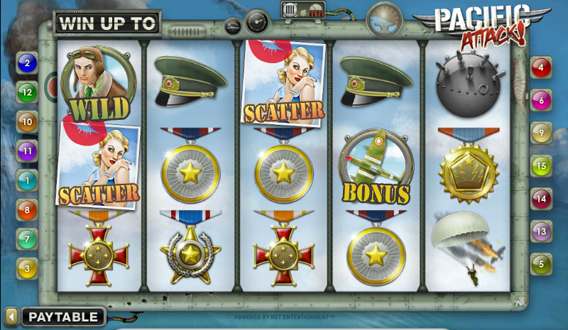 Pacific Attack это пяти-барабанный, не прогрессивный видео слот с 15-ю линиями выплат, от компании NetEnt. В нём есть дикий символ, символ бесплатных вращений, рассыпной символ, а максимальный джек-пот составляет $20,000.
