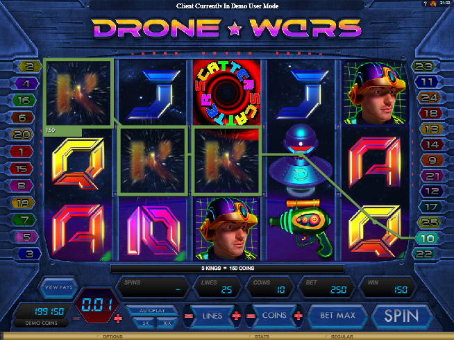 Drone Wars отличный современный слот в жанре sci-fi, в нём есть много отличных бонусов которые делают этот игровой автомат очень азартным. Если вы любите фантастику и вам нравится бороться с инопланетянами на космическом корабле, то этот слот как раз для вас.