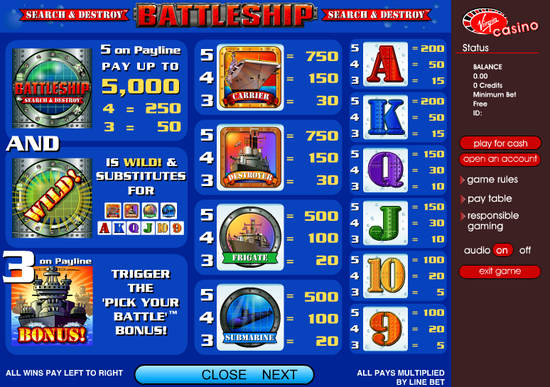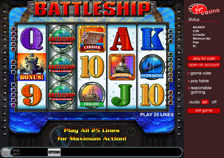 #3 Battleship - Search and Destroy (Линкор: Найти и уничтожить)Battleship - Search and Destroy это пятибарабанный, непрогрессивный слот от компании Wagerworks. В игре есть дикий символ, а максимальный джек-пот составляет $25,000.