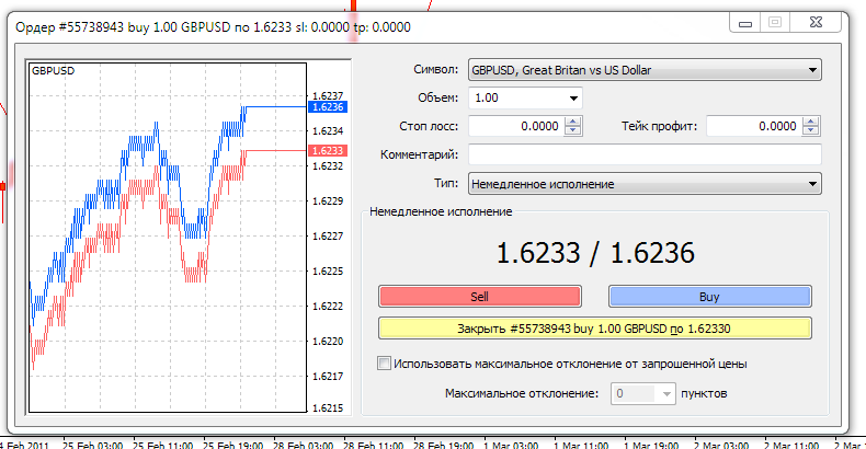 Каждый из этих ордеров может исполняться без промедления либо же по рынку, все будет зависеть от того какой из этих типов предусматривает ваша брокерская компания. Вы сможете достаточно легко определиться, какой из данных вариантов вам больше подходит для работы. В той ситуации, когда вашим счетом предусматривается рыночное исполнение приказов, то при открытии очередного ордера в новом окошке должна появиться вкладка «Максимального отклонения». Благодаря ей все размеры отклонений, которые допускаются в связи с изменением стоимости, будут выставлены в пунктах.