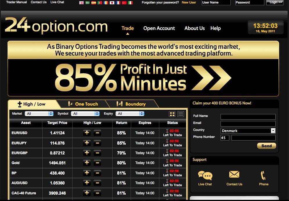 Брокер 24option увидел свет в 2010 году. Их основной офис находится в Лимассоле на Кипре. Организация занимается тем, что обеспечивает трейдеров и инвесторов современными инструментами для торговли и прибыльными бинарными опционами. Брокер ориентируется, прежде всего, на высокие показатели в торговой деятельности существующих клиентов, за счет чего активы компании непрерывно увеличиваются. 24option ставит перед собой задачу максимальной выгоды от торговли бинарными опционами для своих трейдеров. Они могут без проблем вкладывать собственные активы в бинарные опционы. Торговая платформа TechFinancials обеспечивает максимальный процесс упрощения торговли.