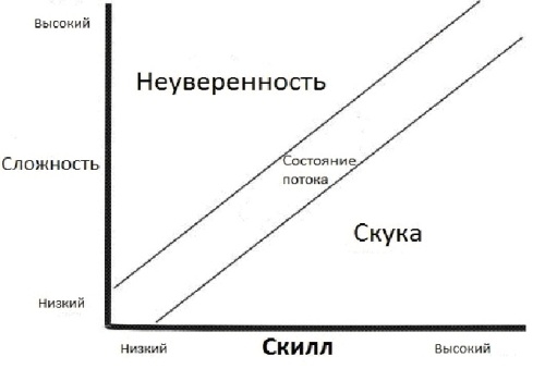 Если же значения скилла не высоки и тоже самое можно сказать о конкуренции (сложности), или же в ситуации, когда в розыгрыши сильному покеристу противостоит такой же сильный соперник, именно в этих случаях достигается состояние потока.