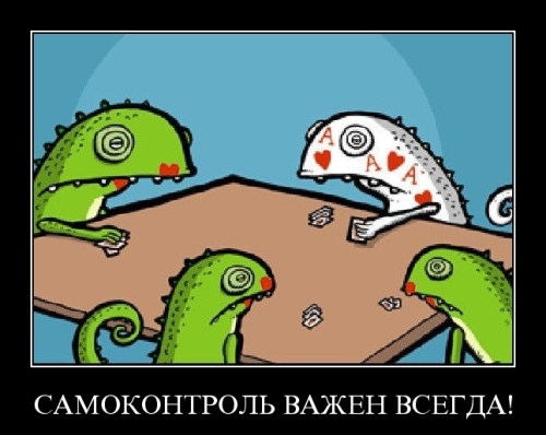 Выше изложенный материал, надеюсь, помог понять, что покер – жизнь, он, по сути, ничем не отличается от обычной работы, которая требует от человека как полного погружения и самоотдачи, так и периодического отдыха. Дальше затронем тему самоконтроля. Что такое самоконтроль и на сколько он важен в покере?