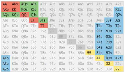 Определение наиболее приближенного к действительности 3бет-диапазона соперника принесет нам огромную помощь в соревнованиях, а именно на средних и поздних позициях, где стеки равны 30ВВ, а 3 бет розыгрыши создают большие поты.