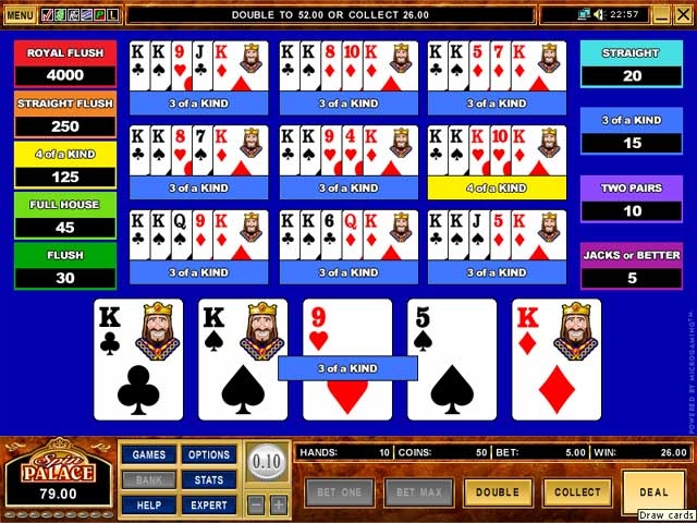6:1 за флеш и 9:1 за фулл хаус (возврат 99,5%) — проигрыш $5;