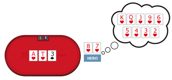 Так что в подобной ситуации блеф – это оправданное решение, к тому же на длительной дистанции еще и прибыльное. Чем больше в игре людей, тем вероятнее, что у кого-либо есть сильный флеш. В то время как против одного соперника риск серьезного флеша уменьшается на порядок. И в то же время велика вероятность, что у оппонента вообще нет флеша, либо же флеш слишком слабый.