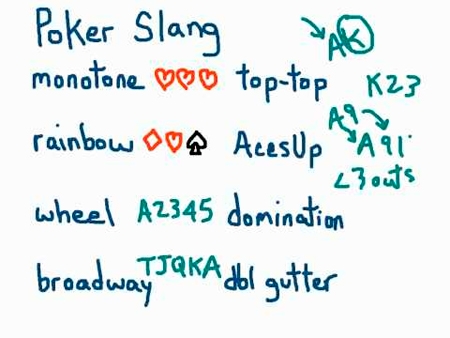 Часто на форумах по покеру или в чате в беседе с оппонентом можно прочитать фразу, которая будет для вас непонятной. Это связано с тем, что за время существования в России покера, выработался определенный покерный жаргон, основанный на переводе английских терминов на русский, а также русских сленговых слов. Рассмотрим подробней основы покера с использованием разных странных слов в покере.
