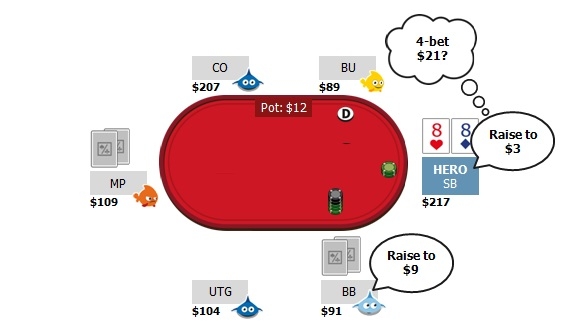 Определение наиболее приближенного к действительности 3бет-диапазона соперника принесет нам огромную помощь в соревнованиях, а именно на средних и поздних позициях, где стеки равны 30ВВ, а 3 бет розыгрыши создают большие поты.