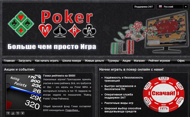 «Poker MIRA» - ресурс сравнительно новый, но уже довольно известный и набирающий популярность. Новое программное обеспечение этого покер-рума делает процесс игры очень интересным и не менее удобным. Для устройств, работающих на платформе Android, была недавно разработана еще и мобильная версия клиента.