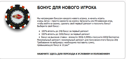 Каждый новый игрок получает поощрительный бонус для того, чтобы легко и просто начать игру. По желанию, клиент казино может выбрать вид бонуса. Это может быть выплата 25% за первый депозит, при этом можно получить до 250 долларов. Существует также бонус, начисляемый за высокие ставки. Это значит, что при депозите в 4000 долларов игрок дополнительно получает 1000 долларов в качестве бонуса. Минимальная сумма, при которой клиент может рассчитывать на бонус, равняется 20-ти долларам. Требованиями вейджера предусмотрено, что ставки должны превышать этот бонус по крайней мере в 25 раз.