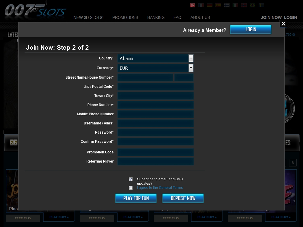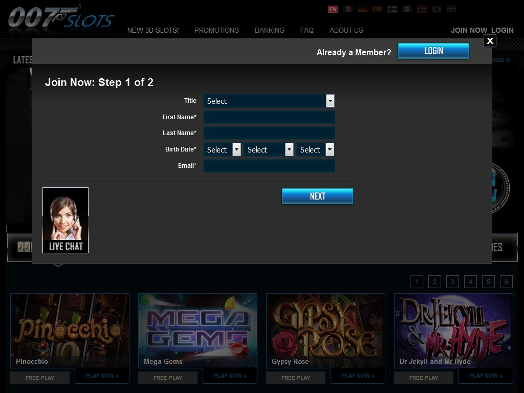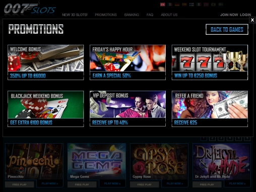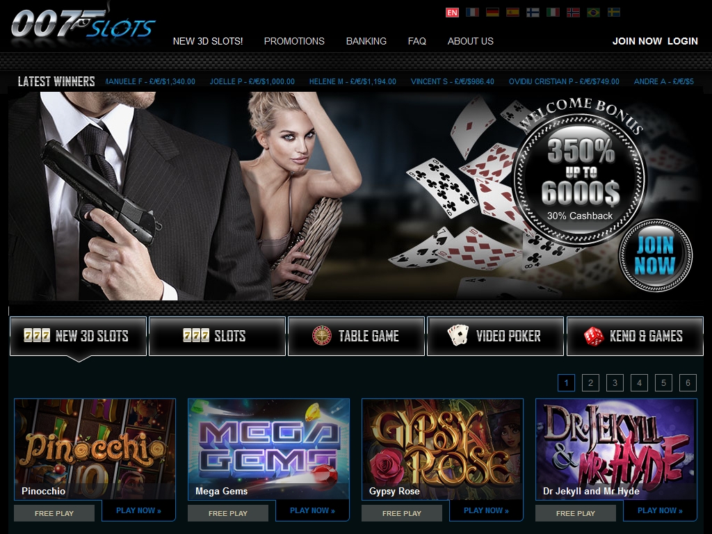 Мощная бонусная программа, поддержка разных валют и платежных систем, широкий диапазон ставок, классный выбор 3D-слотов, наличие турниров и комп-пойнтов, стильный дизайн – эти особенности 007 Slots кажутся нам его главными достоинствами.