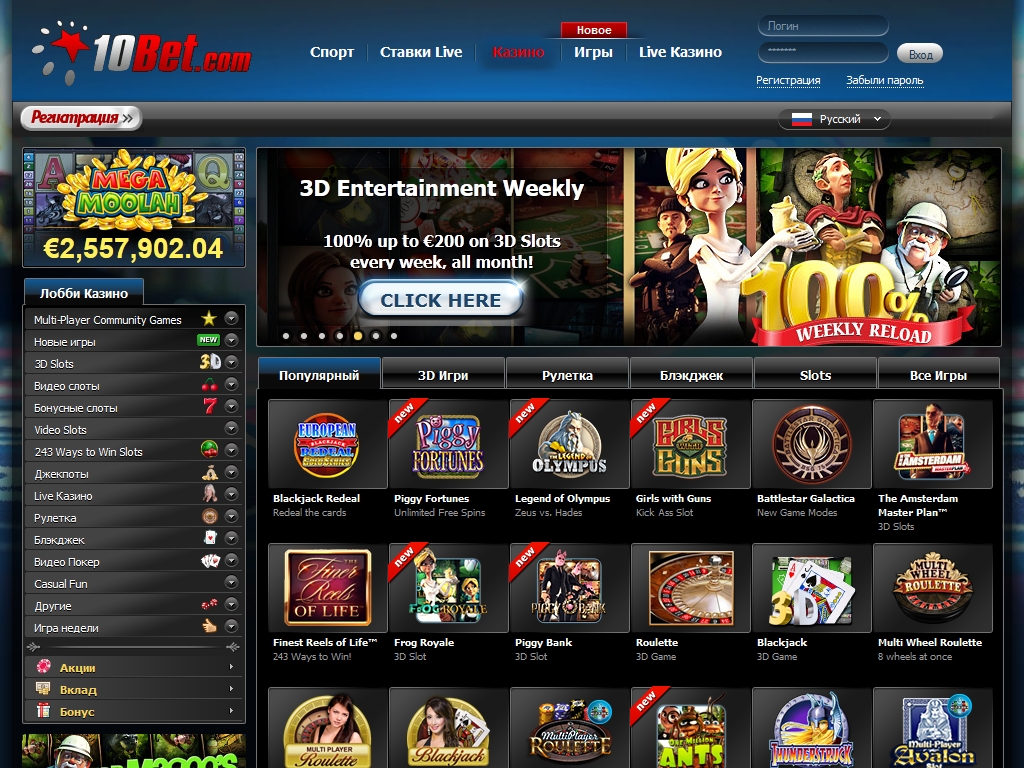 Портал 10Bet выглядит солидно, хотя довольно пестрый дизайн придется по вкусу не каждому. Если перейти по вкладке «Казино», можно будет выбрать между Golden Casino и Platinum Casino, баннеры которых украшены главными героями из слотов производства CTXM и Microgaming. В целом, структура сайта очень удобна. Он полон полезной информации на грамотном русском языке.